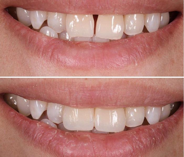 Bonding is a treatment that can be used to repair teeth that are decayed, chipped, fractured, or discolored or to reduce gaps between teeth. For this procedure, a dentist mixes composite resin — a type of plastic — into a paste, then tints the mixture to whiten or match the color of your teeth. Several layers of resin are applied to each tooth. Each layer is hardened under ultraviolet light or laser. The final steps include shaping and polishing the resin material so the finished tooth looks natural and smooth.