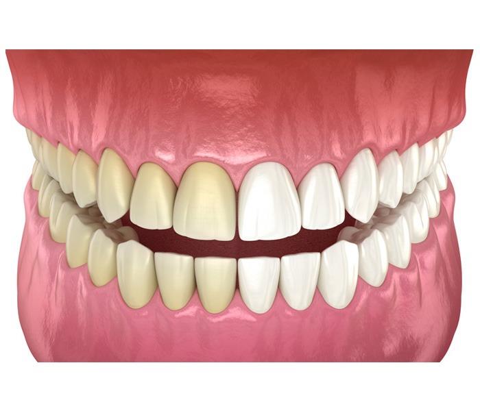 Teeth naturally darken with age, however staining may be caused by various foods and beverages such as coffee, tea, and berries, some drugs such as tetracycline, smoking, or a trauma to a tooth. There are various teeth whitening options available, including in-office and at-home bleaching.